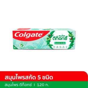 คอลเกต ปัญจเวท ยาสีฟันสมุนไพร ดีท็อกซ์ ด้วยพลังสมุนไพรสกัดชั้นยอดจากธรรมชาติ 5 ชนิดได้แก่ กานพลู ใบมะกอก น้ำมันขิง มะขามป้อม และสะเดา ที่ช่วยดีท็อกซ์และขจัดสิ่งตกค้างจากมุมต่างๆ ของช่องปากเมื่อแปรงฟัน
