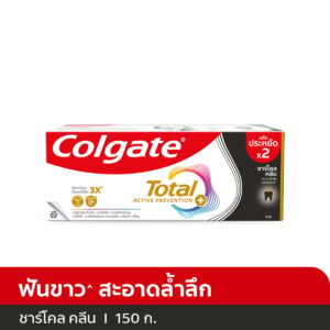 คอลเกต โททอล ยาสีฟัน สูตรชาร์โคล คลีน สูตรเฉพาะที่มีถ่านชาร์โคลช่วยทำความสะอาดล้ำลึกและลดการสะสมของแบคทีเรียได้ยาวนานถึง 12 ชั่วโมง เพื่อสุขภาพช่องปากที่ดียิ่งขึ้น