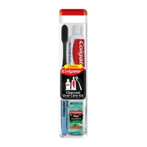 คอลเกต ชาร์โคล ออรัลแคร์ คิท ชุดแปรงฟันสำหรับการทำความสะอาดฟันครบเซ็ตในรูปแบบกล่อง เหมาะสำหรับใช้ในการเดินทางนอกสถานที่ พกพาง่าย ใช้สะดวกสบาย