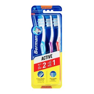 เบอร์แมน แปรงสีฟัน รุ่นแอ็คทีฟ มีเดียม คละสี แพ็ค 2+1