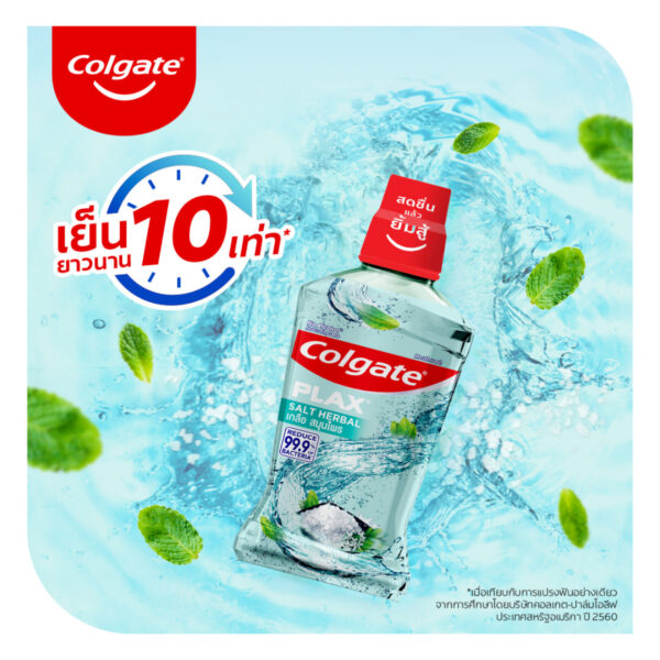 ปากหอมสดชื่นยาวนานตลอดวัน ยับยั่งการเกิดแบคทีเรีย พร้อมปกป้องช่องปากของคุณให้สะอาดและหอมสดชื่น หมดกังวลเรื่องกลิ่นไม่พึงประสงค์เพื่อคุณพร้อมลุยในทุกกิจกรรมไปกับคอลเกตพลัส น้ำยาบ้วนปาก กลิ่นเกลือ สมุนไพร