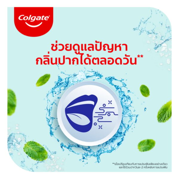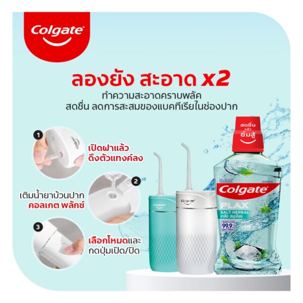 – เพิ่มความมั่นใจด้วยคอลเกตพลัส ใช้ 2 ครั้งต่อวัน หลังการแปรงฟัน เทใส่ฝาปริมาณ 20 มล. กลั้วปากนาน 30 วินาที แล้วบ้วนทิ้ง ห้ามกลืน