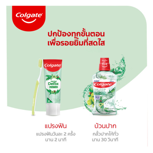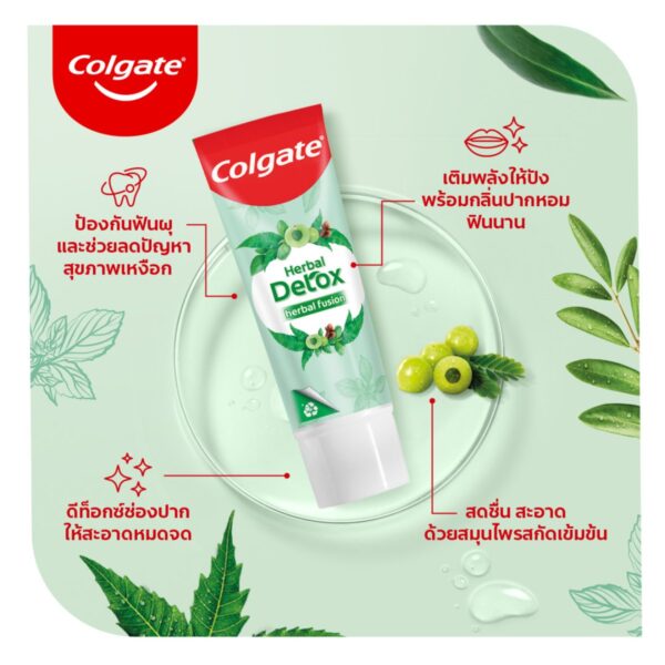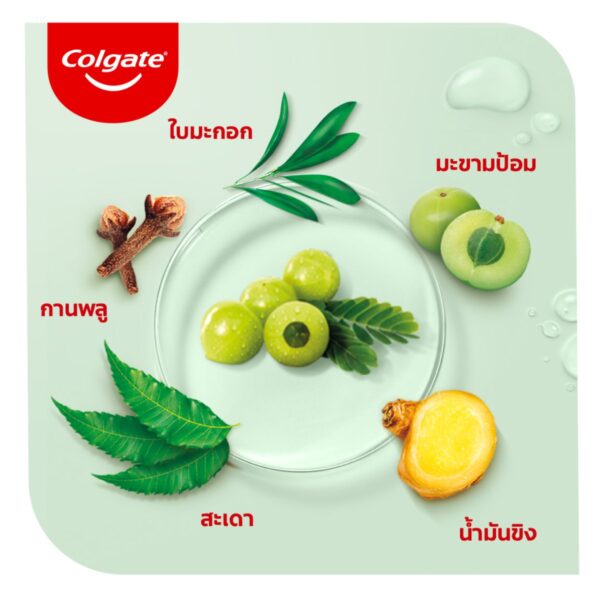 คอลเกต ปัญจเวท ยาสีฟันสมุนไพร ดีท็อกซ์ ด้วยพลังสมุนไพรสกัดชั้นยอดจากธรรมชาติ 5 ชนิดได้แก่ กานพลู ใบมะกอก น้ำมันขิง มะขามป้อม และสะเดา ที่ช่วยดีท็อกซ์และขจัดสิ่งตกค้างจากมุมต่างๆ ของช่องปากเมื่อแปรงฟัน