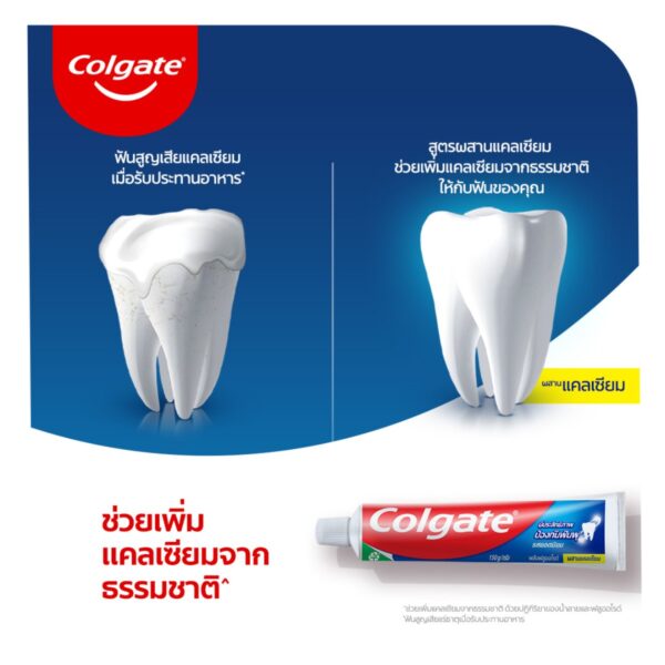 คอลเกต ยอดนิยม สูตรพลังอะมิโน มีประสิทธิภาพป้องกันฟันผุ ช่วยเพิ่มแคลเซียมจากธรรมชาติ ให้แก่ฟันของทุกคนในครอบครัวคุณ มอบรอยยิ้มที่มีสุขภาพดีจากภายใน ช่วยลดการสูญเสียแร่ธาตุจากฟันได้ 4 เท่าเมื่อเมื่อเปรียบเทียบกับยาสีฟันคอลเกตฟลูออไรด์ทั่วไป