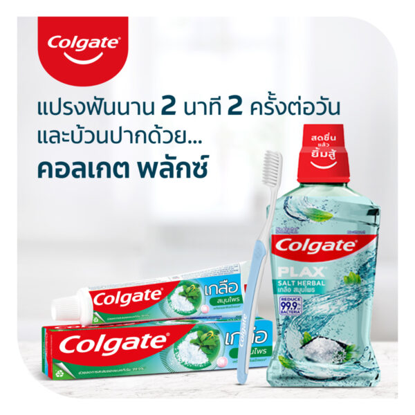 คอลเกต ยาสีฟัน สูตรเกลือสมุนไพร ตัวช่วยที่จะทำให้ช่องปากของคุณสะอาด และมีเหงือกที่แข็งแรง ด้วยส่วนผสมยาสีฟันที่มีเกลือสมุนไพรผสานเข้ากับแคลเซียม และฟลูออไรด์ ที่จะทำหน้าที่ในการปกป้องอย่างครบสูตร พร้อมช่วยลดการสะสมของแบคทีเรีย เพื่อสุขภาพเหงือกที่ดีอย่างยาวนาน