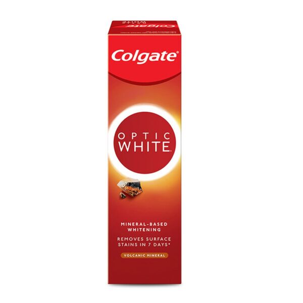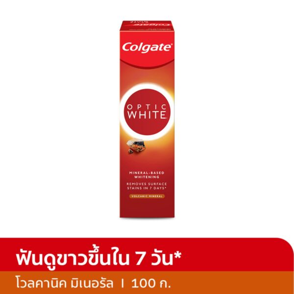 ยาสีฟันคอลเกต อ๊อฟติค ไวท์ โวลคานิค มิเนอรัล ช่วยขจัดคราบสิ่งสกปรกเผยฟันแลดูขาวกระจ่างใสเงางามเป็นประกายอย่างอ่อนโยนเป็นธรรมชาติ พร้อมมอบลมหายใจหอมสดชื่น