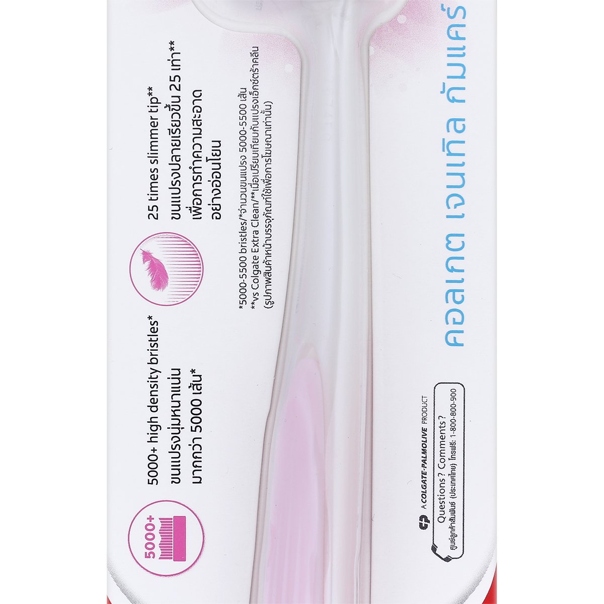 ขนเเปรงปลายเรียวเเหลม มากกว่า 5,000 เส้น ลดเเรงกดทับบนเหงือกขณะเเปรงฟันเ ขนแปรงปลายเรียวขึ้น 25 เท่า เพื่อการทำความสะอาดอย่างอ่อนโยนระหว่างร่องเหงือกเเละซอกฟัน