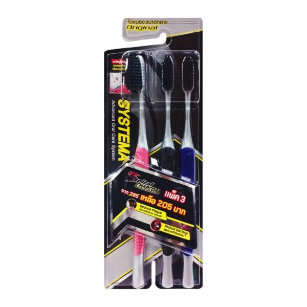 ซิสเท็มมา แปรงสีฟัน สไปรัล ชาร์โคล แพ็ค 3