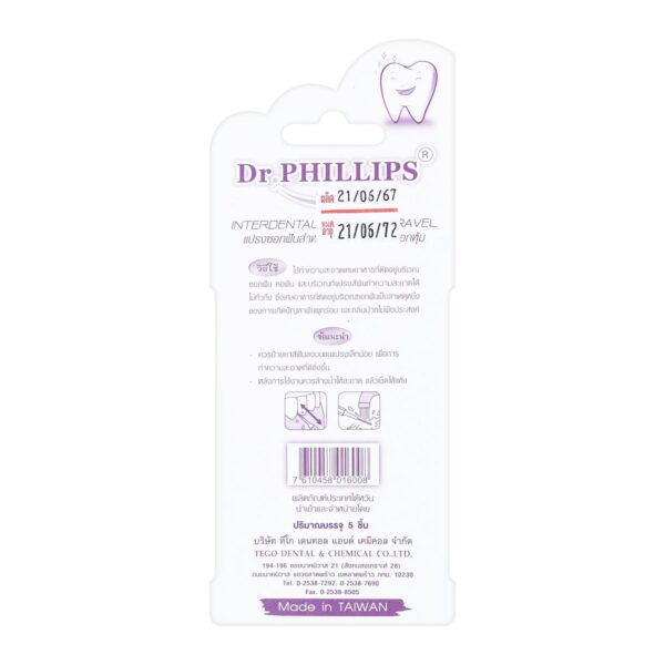 ดร.ฟิลลิปส์ แปรงทำความสะอาดซอกฟัน ทำความสะอาดเศษอาหารที่อยู่บริเวณซอกฟัน คอฟัน และบริเวณที่แปรงสีฟันทำความสะอาดได้ไม่ทั่วถึง เพื่อการดูแลสุขภาพเหงือกและฟันให้แข็งแรง