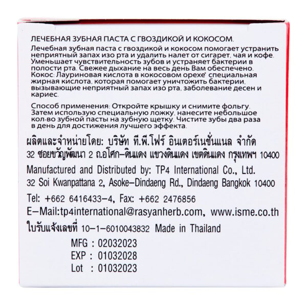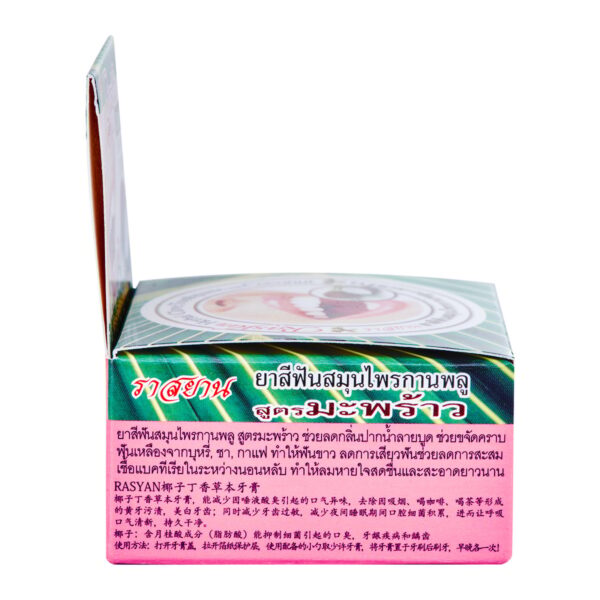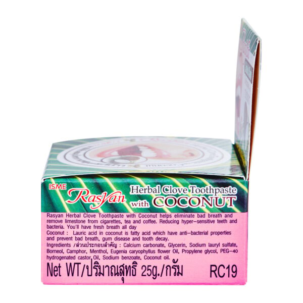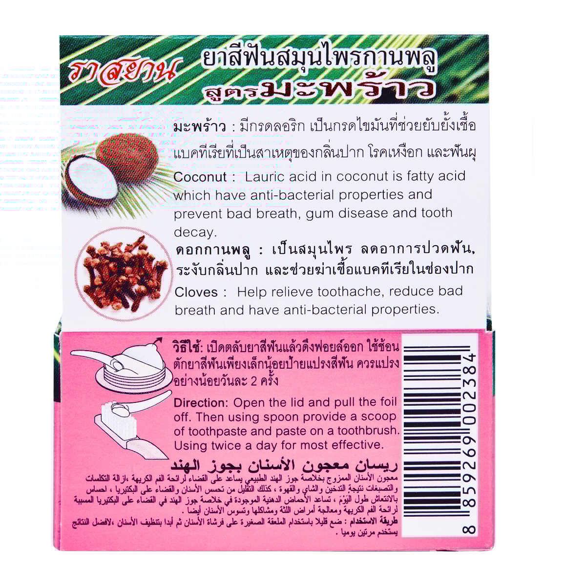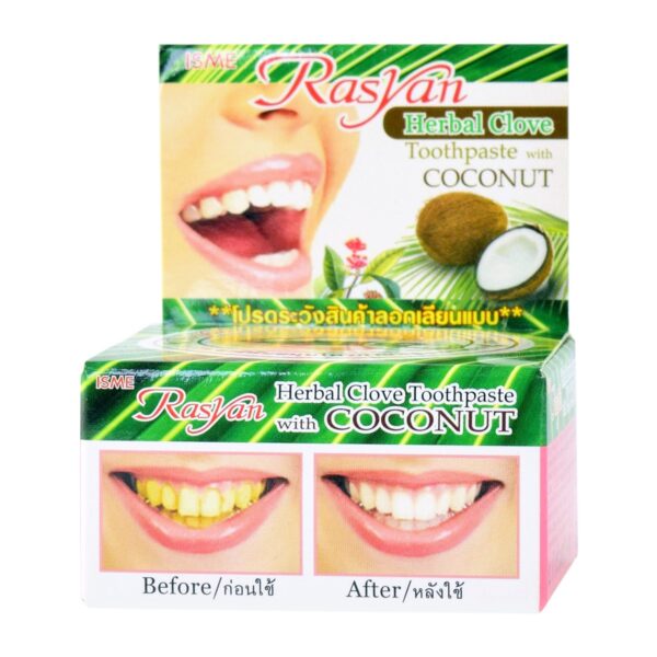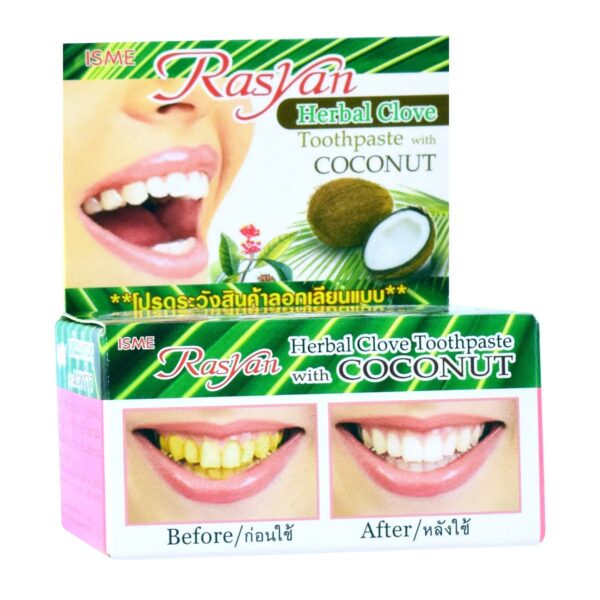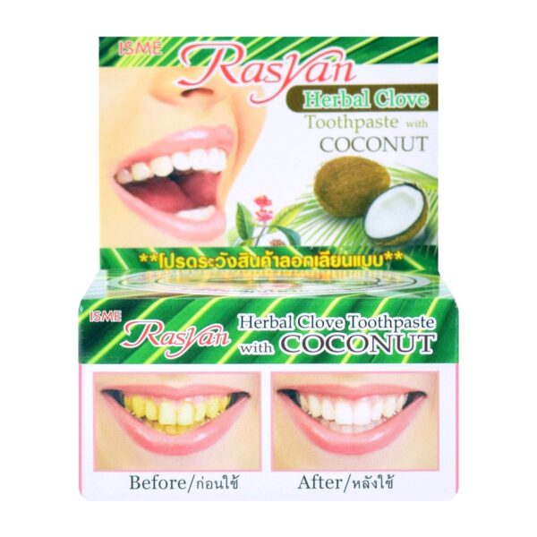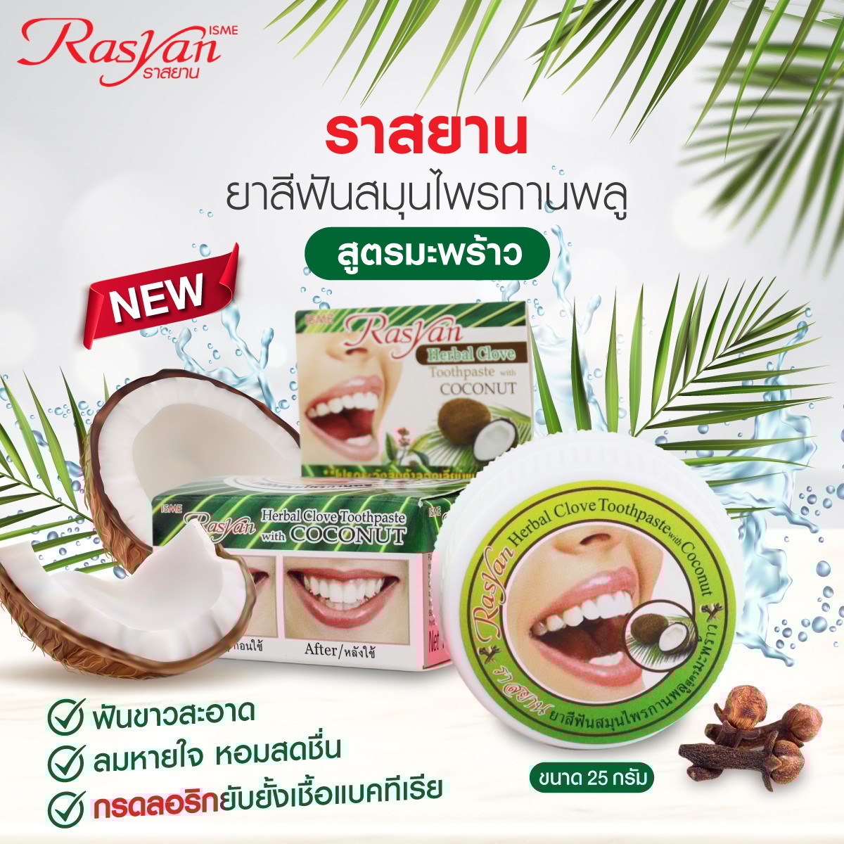 – ราสยาน ยาสีฟันสมุนไพรกานพลู สูตรมะพร้าว