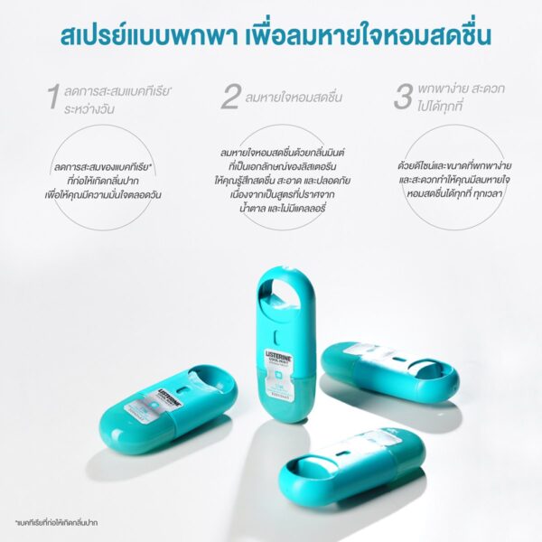 – สเปรย์ระงับกลิ่นปาก ขนาดเล็ก ที่สามารถพกพาได้สะดวกสบาย