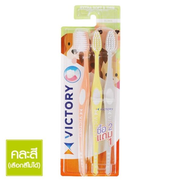วิคตอรี่ แปรงสีฟัน รุ่นสลิมม่า (แพ็ค 2 แถม 1 ในแพ็ค) คละสี
