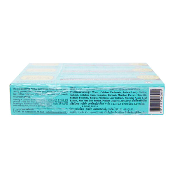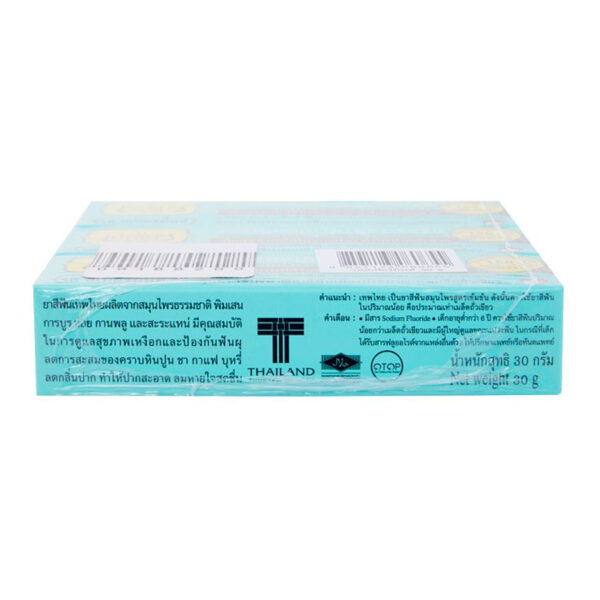 – ยาสีฟันสมุนไพรสูตรเข้มข้น เป็นยาสีฟันที่ผลิตจากสมุนไพรธรรมชาติ เช่น พิมเสน การบูร ข่อย กานพลู และสะระแหน่