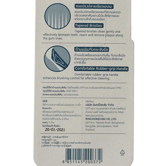 – ด้ามแปรงสีฟัน ผลิตจากโพลีโพรพิลีน และเทอร์โมพลาสติกอีลาสโตเมอร์