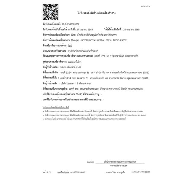 – ยาสีฟันสมุนไพร สูตรสมุนไพรแท้