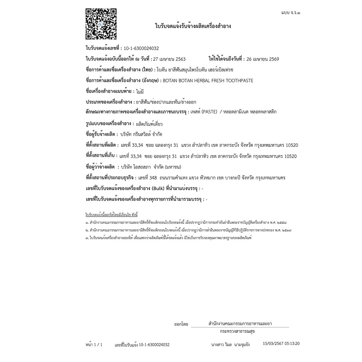 โบตัน เฮอร์เบิลเฟรช ยาสีฟันสมุนไพร