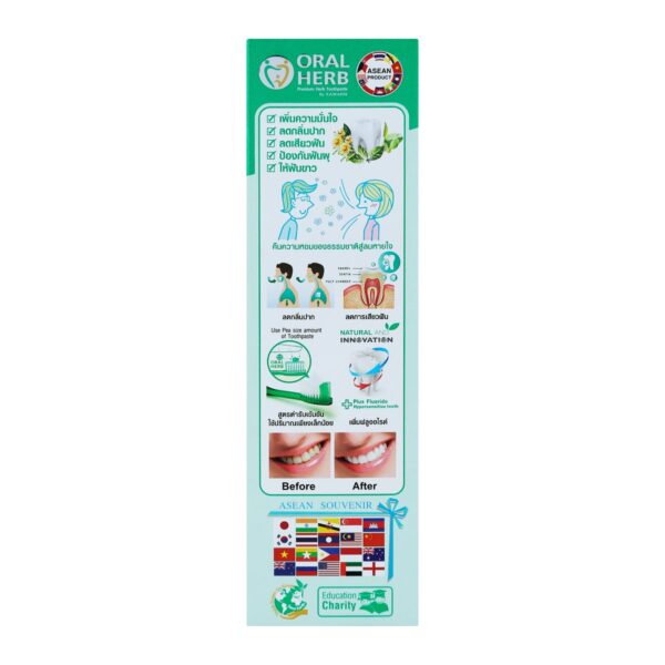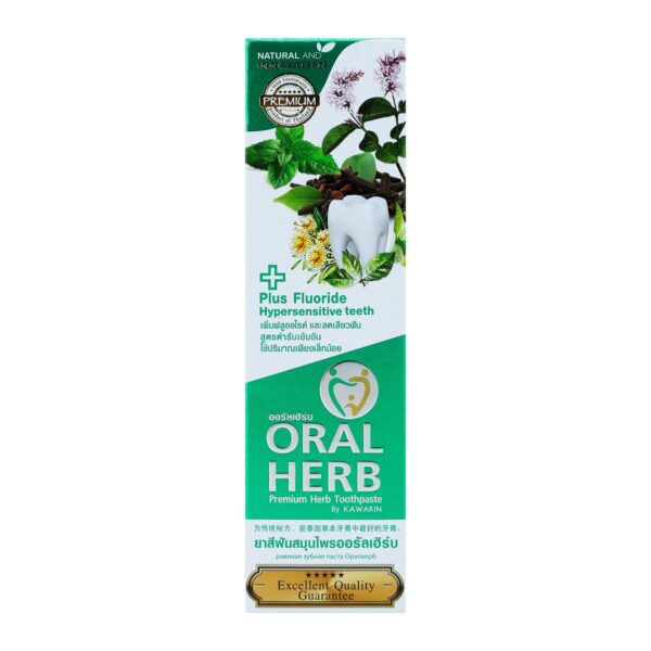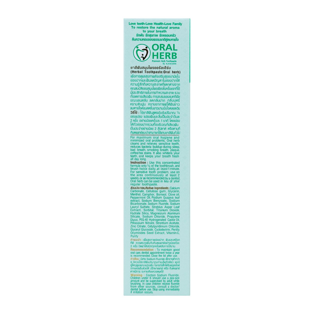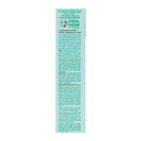 ออรัลเฮิร์บ ยาสีฟันสมุนไพร 50 ก. ผลิตจากสมุนไพรไทยธรรมชาติ ด้วยสูตรที่คิดค้นและได้รับการยอมรับมายาวนานกว่า 15 ปี สามารถระงับกลิ่นปากรวมทั้งบรรเทาอาการปวดฟัน ลมหายใจหอม ปากเย็นสดชื่น ช่วยให้ฟันขาวสะอาด และแข็งแรงมากขึ้น